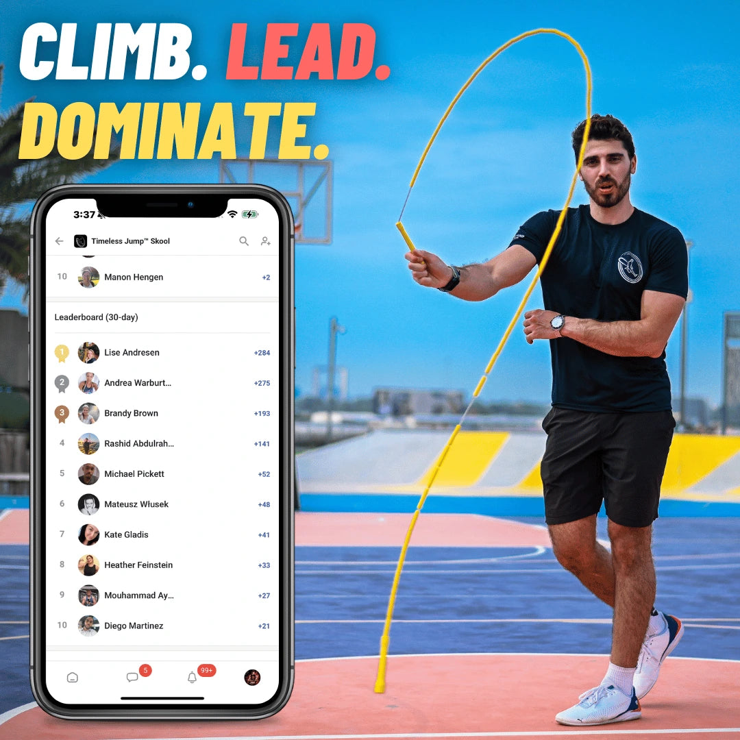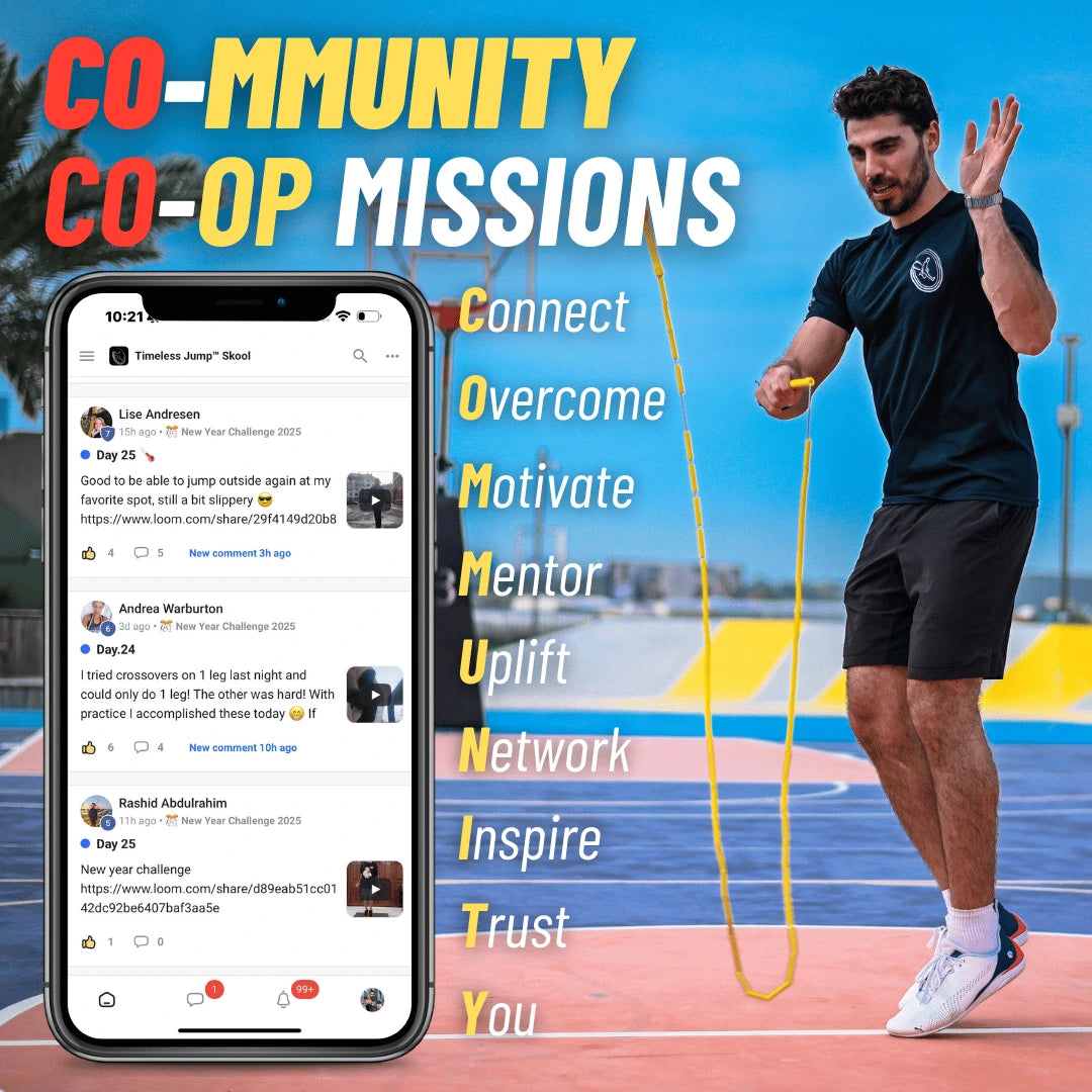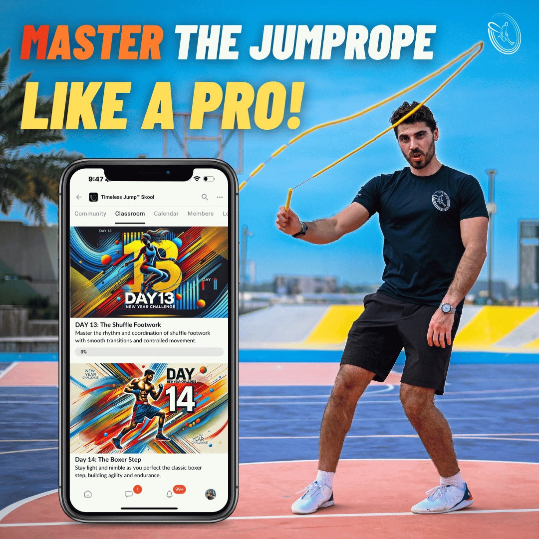 Get full access to expert coaching, structured training, and a supportive jump rope community, all hosted on the Timeless Jump Skool.